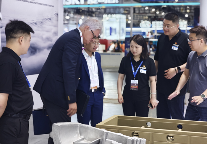 展位前,眾多行業(yè)知名企業(yè)代表、專家學者和技術人員對我司展品的鑄造工藝、流程、技術、發(fā)展等問題進行探討。