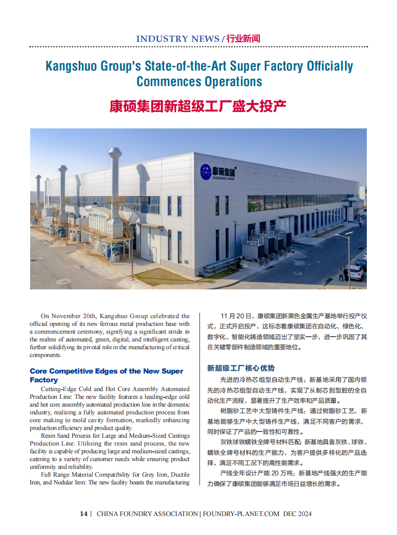 轉(zhuǎn)載康碩集團新超級工廠投產(chǎn)新聞