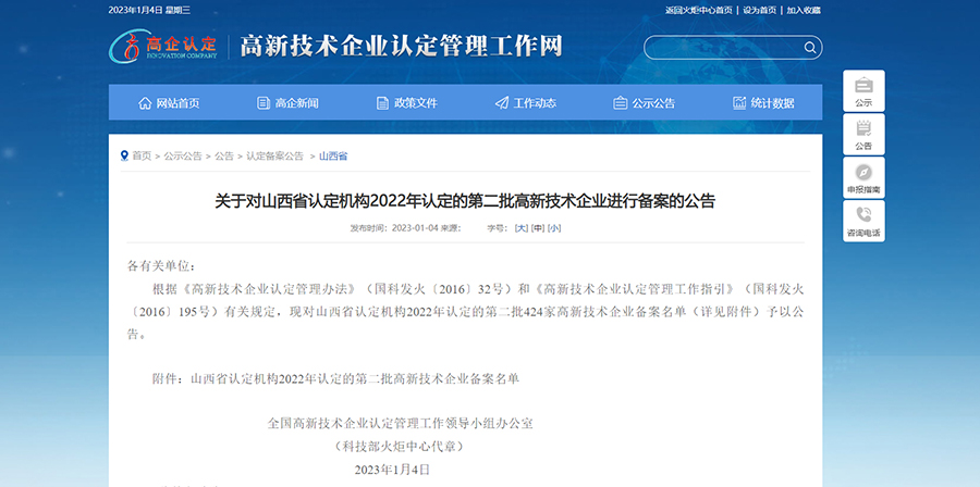 康碩(山西)智能制造有限公司被認(rèn)定為2022年第二批高新技術(shù)企業(yè)